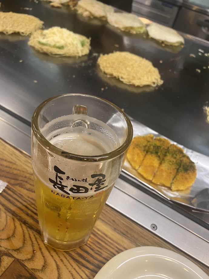 ということで、お好み焼き長田屋へ。11時開店で11:30位に到着。かなりの有名店なので行列覚悟で行ったが、カウンターが空いておりスムーズに入れた!