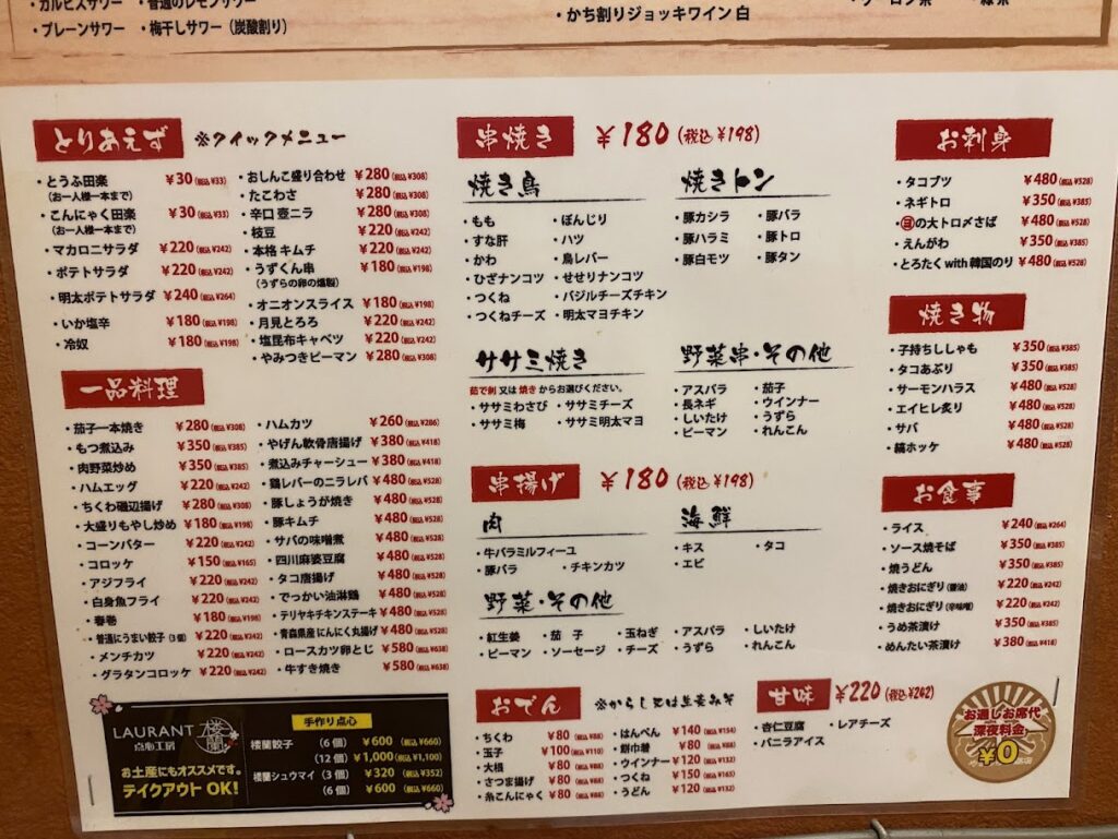 飲み物は300円台からだし、おつまみは何と30円から(笑)