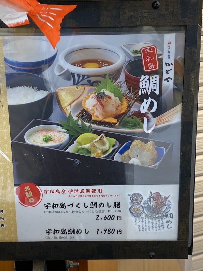 空港の有名店「かどや」の鯛めしは1,980円。