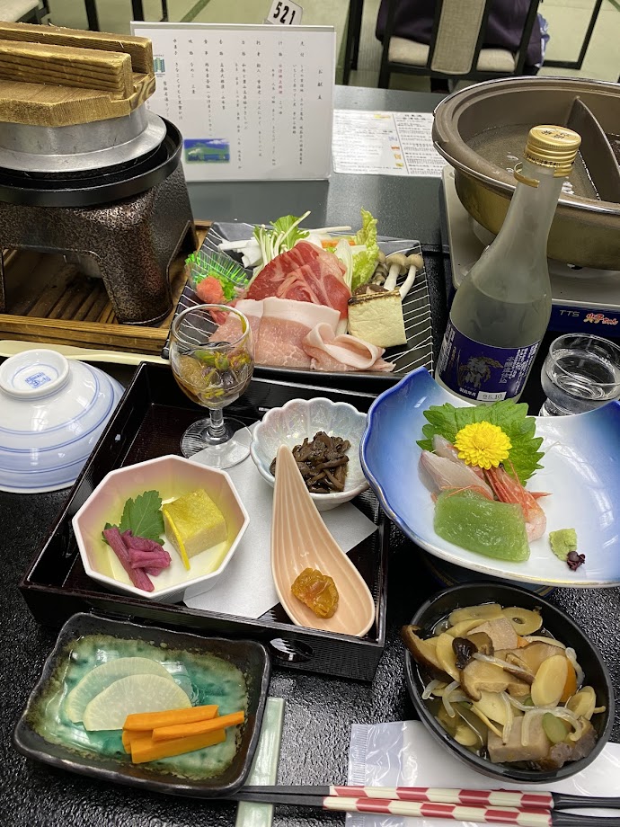 温泉は到着後、夕食後、就寝前、朝、朝食後と5回入ったと思う。