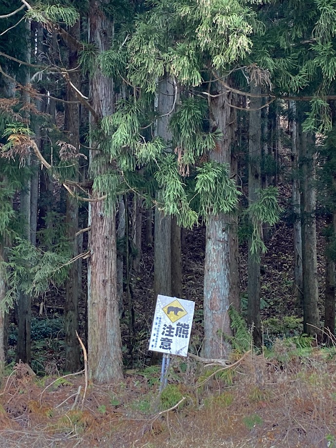 熊に注意。近辺の温泉地には熊の出没が目撃されている。