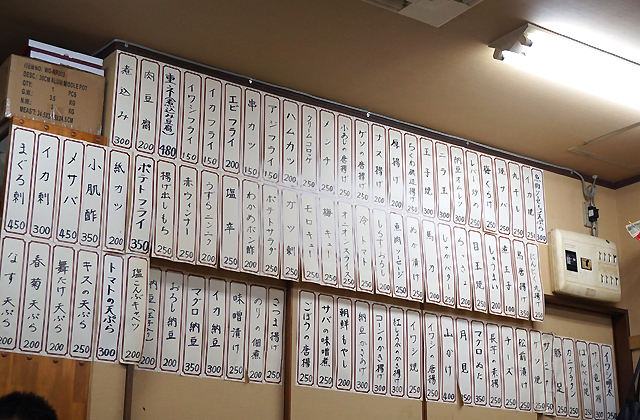 さて、本体のメニューは壁にぎっしりと短冊が貼られてある。