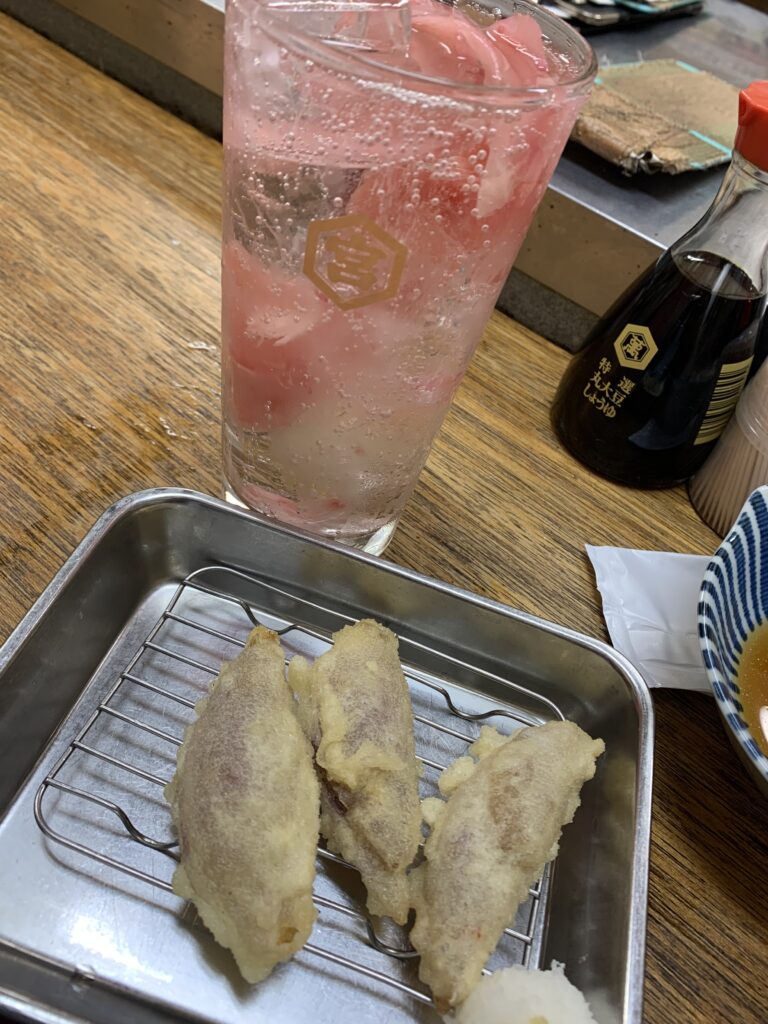 ガリ酎(酎ハイにお寿司のガリを入れたもの)でさっぱりきりっと。