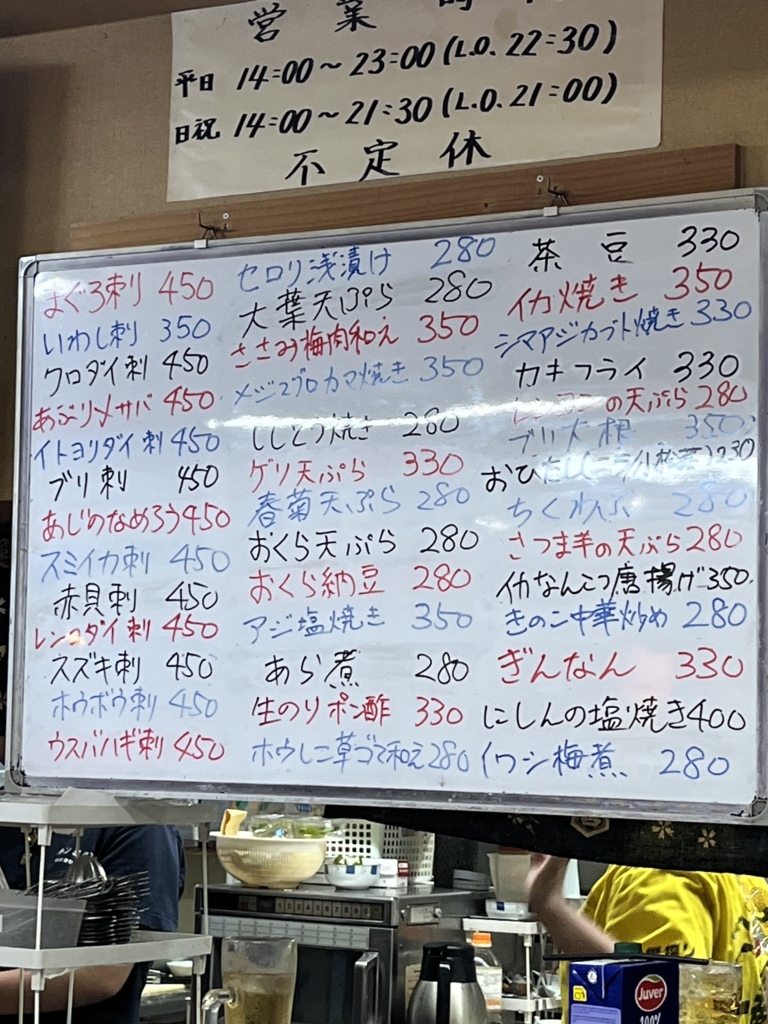 船橋市場から仕入れているのだろうか、おすすめメニューに刺身系があり、侮れない。