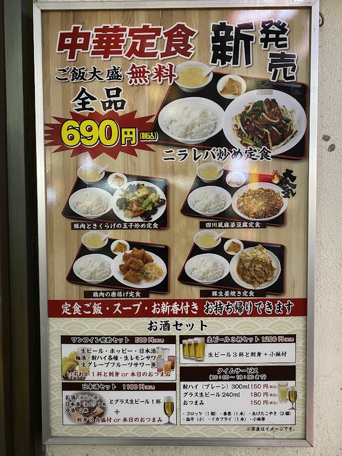 おつまみは悩みどころだが、中華系を推していて定食も充実している。