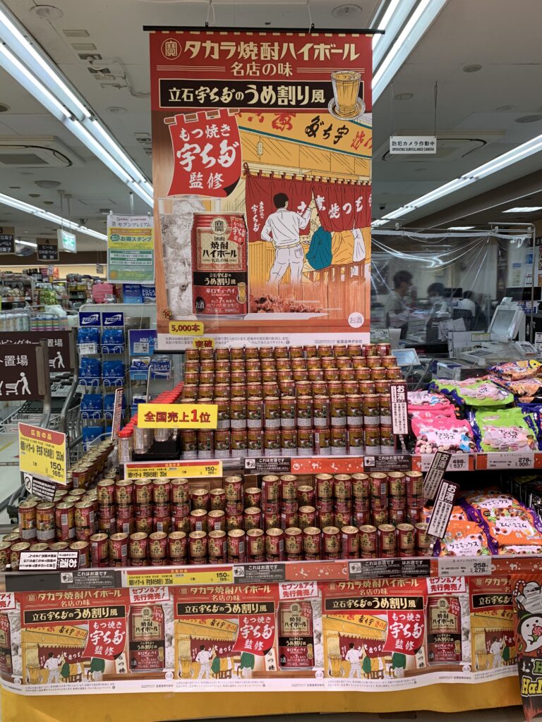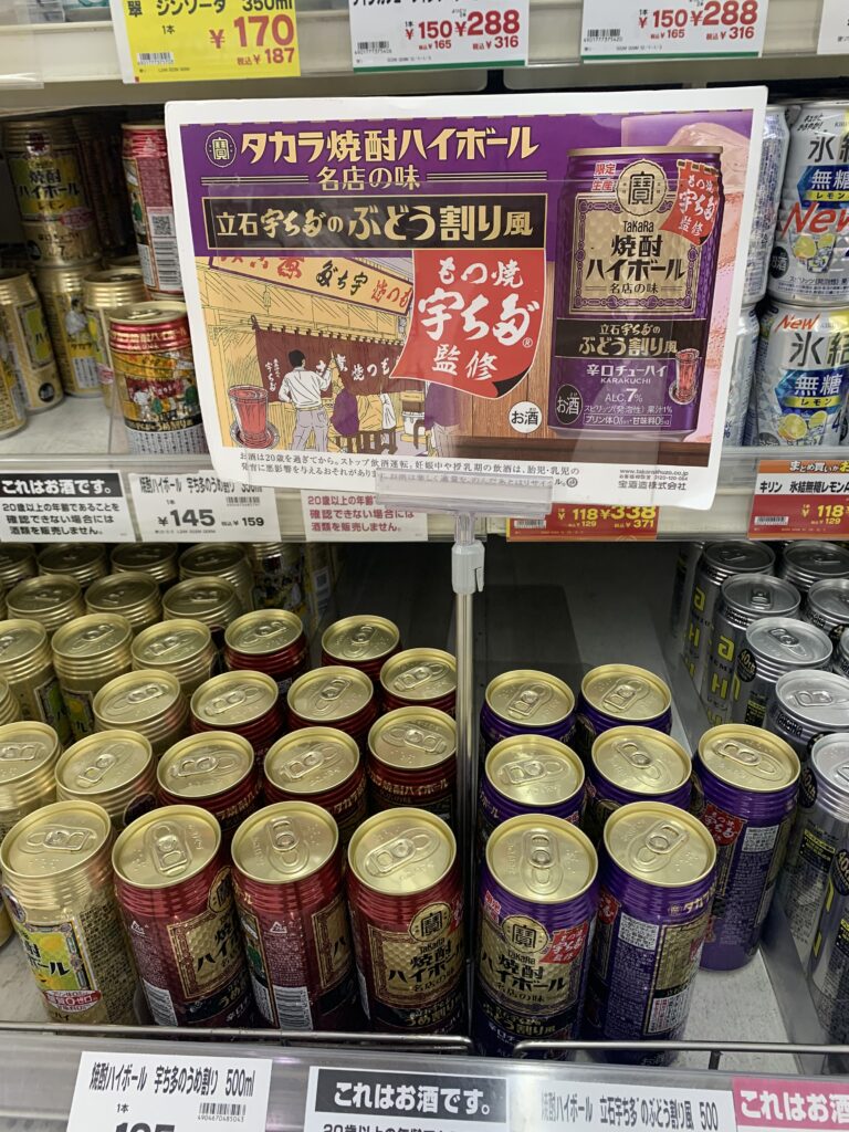 店近くのイトーヨーカドーでは、宇ち多゛の焼酎ハイボールが大量に売っている。