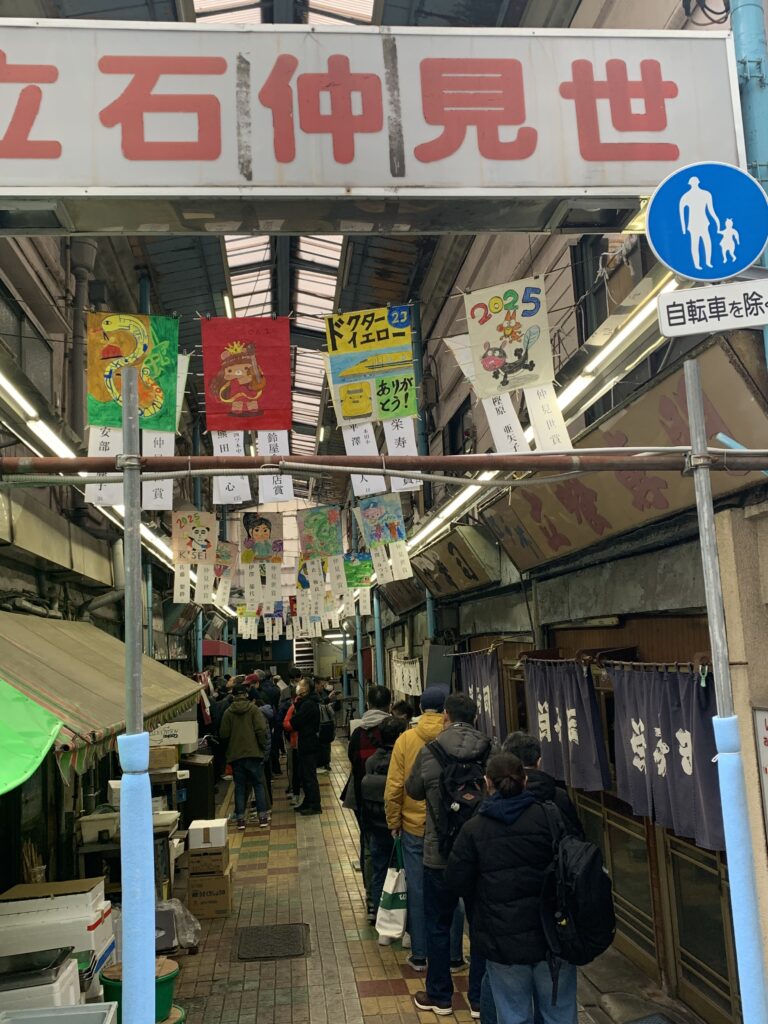 右の行列は立ち食い寿司の名店「栄寿司」、この店は立ち食いとは思えないほど寿司ネタのレベルが高く、エビスビールの小瓶が乙である。画像が無いので改めて紹介したい。
