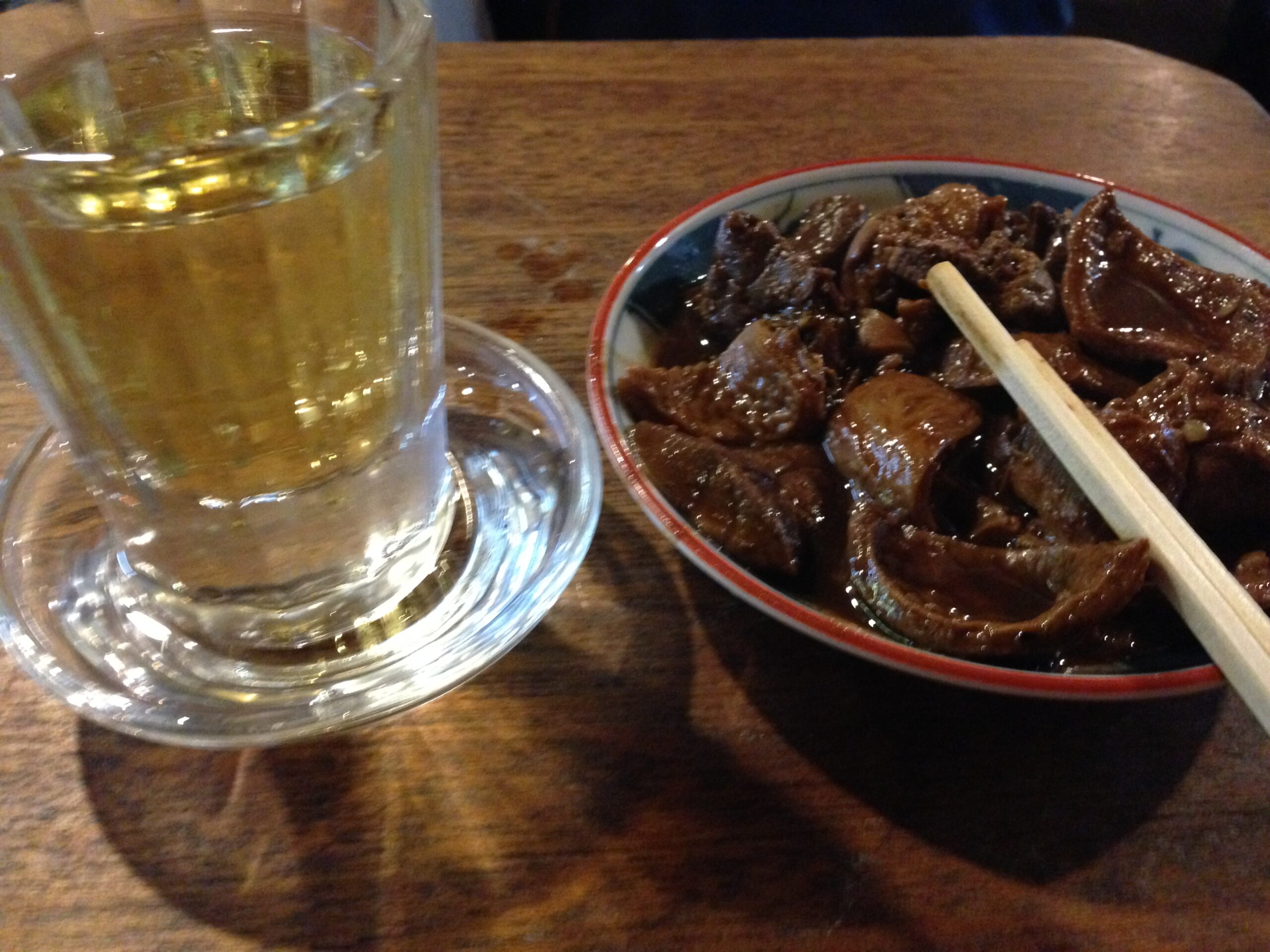 店内では画像をあまり撮る雰囲気ではないので、ほとんど残っていないが、煮込みと梅割りのベーシックな組み合わせで乾杯。