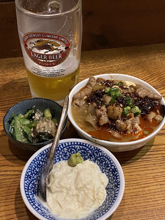 ここの生ビールはキリンラガー、珍しい。ジョッキは細いもので量が少ないのが主流だが、昔ながらの大きいジョッキに唸らされる。