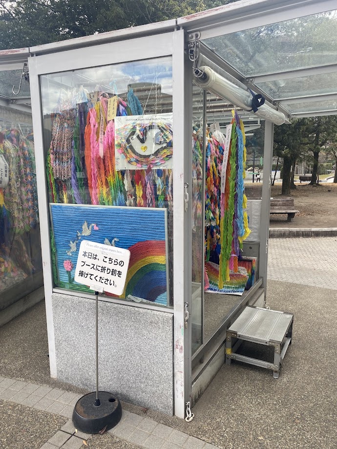 「原爆の子の像」は被爆のため白血病を発症し、折り鶴を折りながら闘病し続けた佐々木禎子さんを偲び、原爆の犠牲になった子どもたちを慰霊するために建てられた。その周りには世界から折り鶴が寄せられ、我々が折った鶴を捧げることもできる。