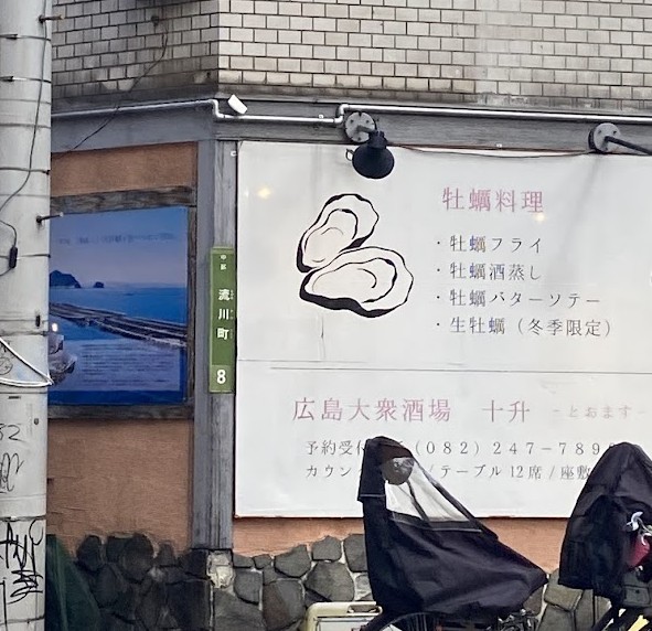 24時間オープンで、ご当地ものメニューも豊富で、夜困ったときにすぐ入れる走攻守揃った(?)店。「とおます」と読む。宿泊先のホテル28広島の目と鼻の先にあり、お好み焼きふみちゃんの後に寄ってみた。