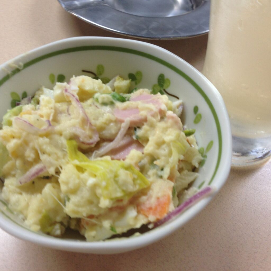 飲み屋レベルの指標となるポテサラもあった。ハム、玉ねぎ、にんじんなど野菜を練りこんであり、手作り感が半端ない。
