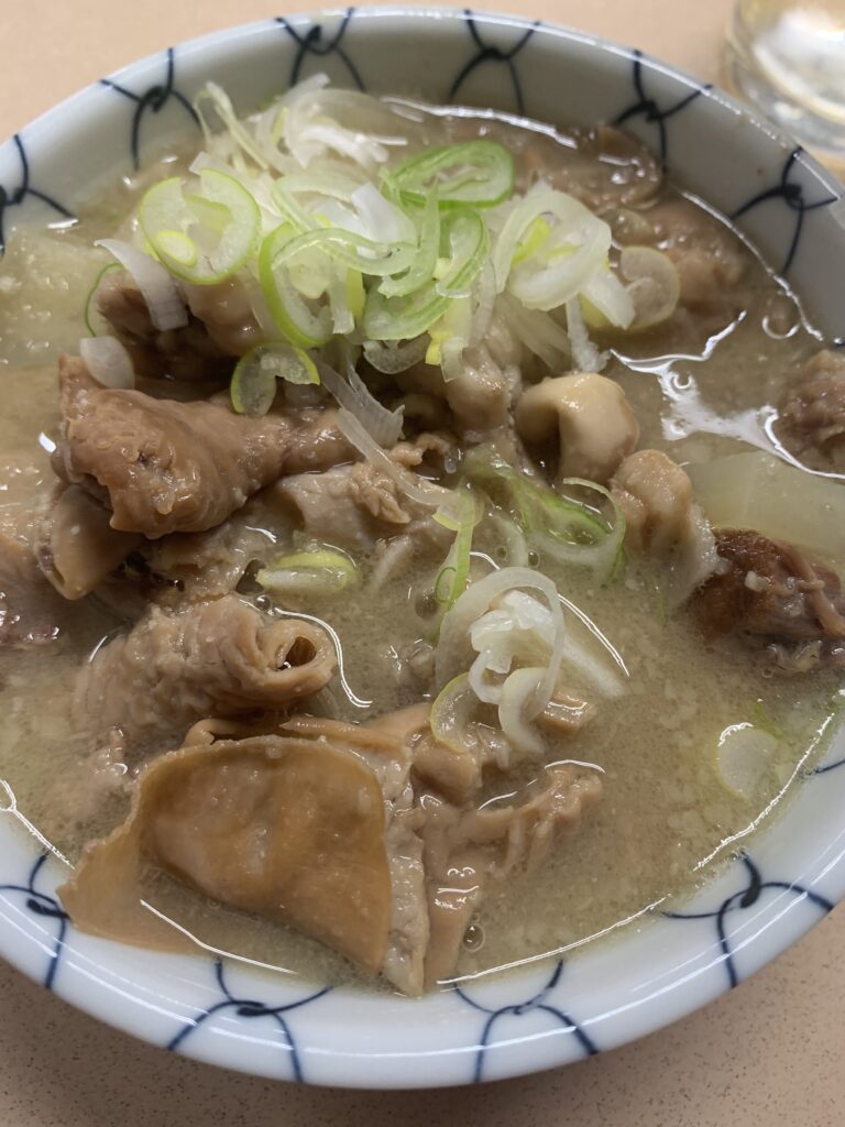 煮込みは巨大な鍋で作っており、モツがとろけるくらい柔らかいのとニンニクが効いているのが特徴。大きいのでいつしかできたハーフの方がおすすめ。