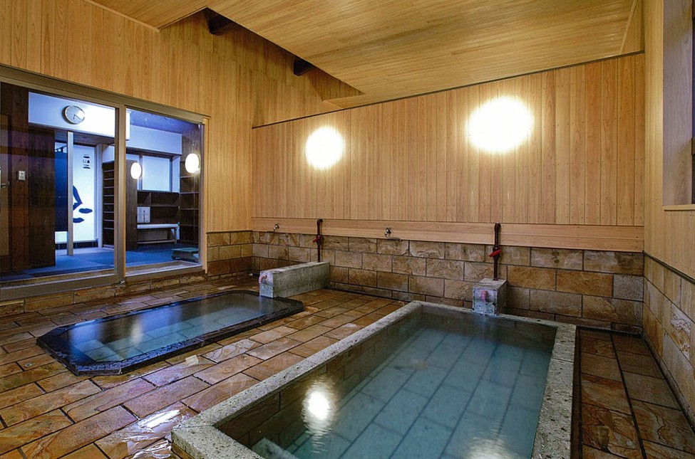 男女ともに内湯で、熱湯と温湯があり交互に入れる。