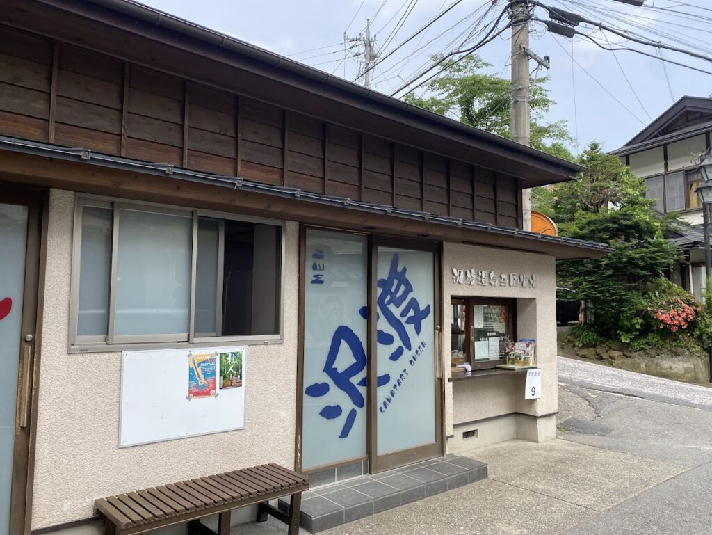 日帰り浴場の沢渡温泉共同浴場は木造の小さな建物で、料金は300円。