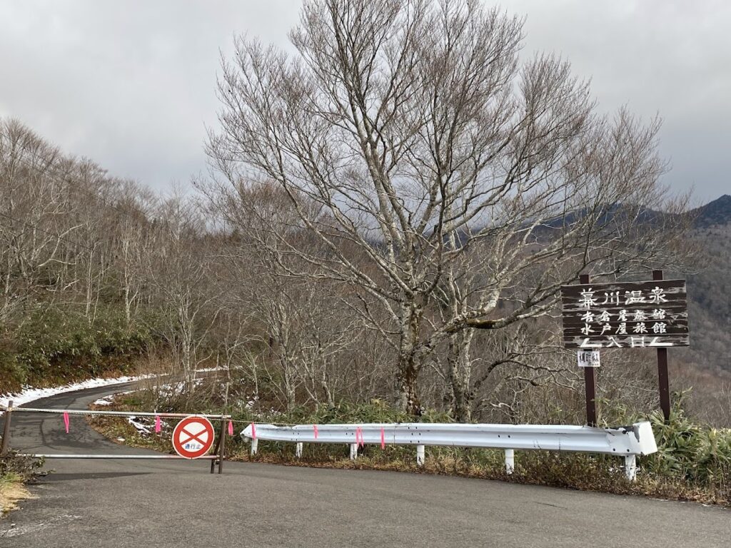 白濁とグリーンの褐色がある標高1300メートルの秘湯宿。11月中旬~ゴールデンウイークまで冬季閉鎖になるため、看板のみ撮影。好山荘から野地温泉、鷲倉温泉を経てかなりの山奥にある。