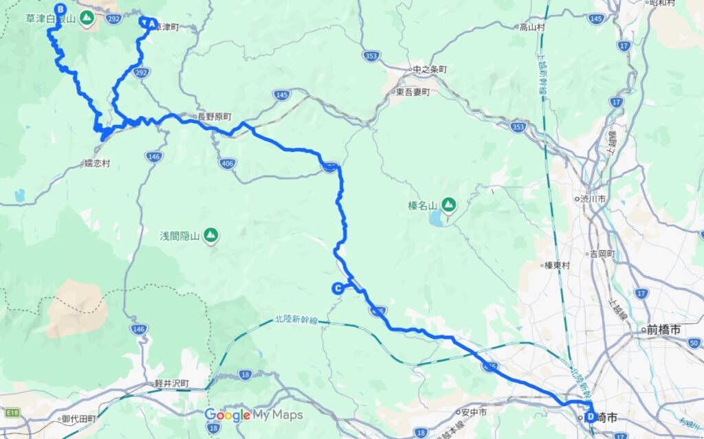 1日目 高崎~赤城温泉郷~渋川~伊香保温泉~沢渡温泉~草津温泉