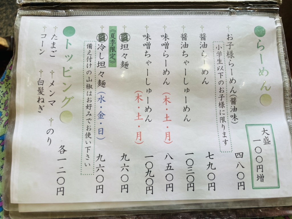 ラーメン以外には餃子を売り出しているが、個人的には普通の印象。