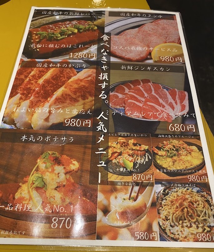 焼肉・ホルモンのメニュー構成がビジュアル的にすごく訴えてきて、全て頼みたくなってしまった。おそらくこの店はコンセプトや営業手法がうまいのだと思う。