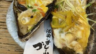 高浜駅から35分で松山市駅に到着。松山市の中心で、市電の坊ちゃん列車の発地でもある。髙島屋の目の前で、屋上には大観覧車のくるりんが見える。まつちかタウン、という地下のショッピング&レストラン街で、調べていた立ち飲み「魁」に入店した。「さきが...